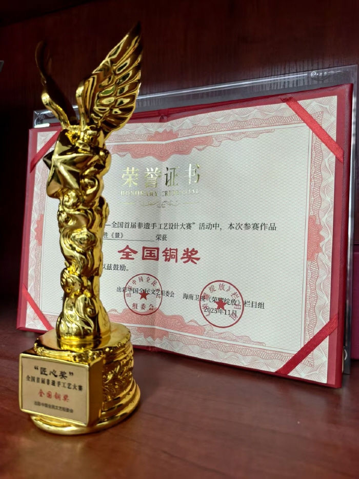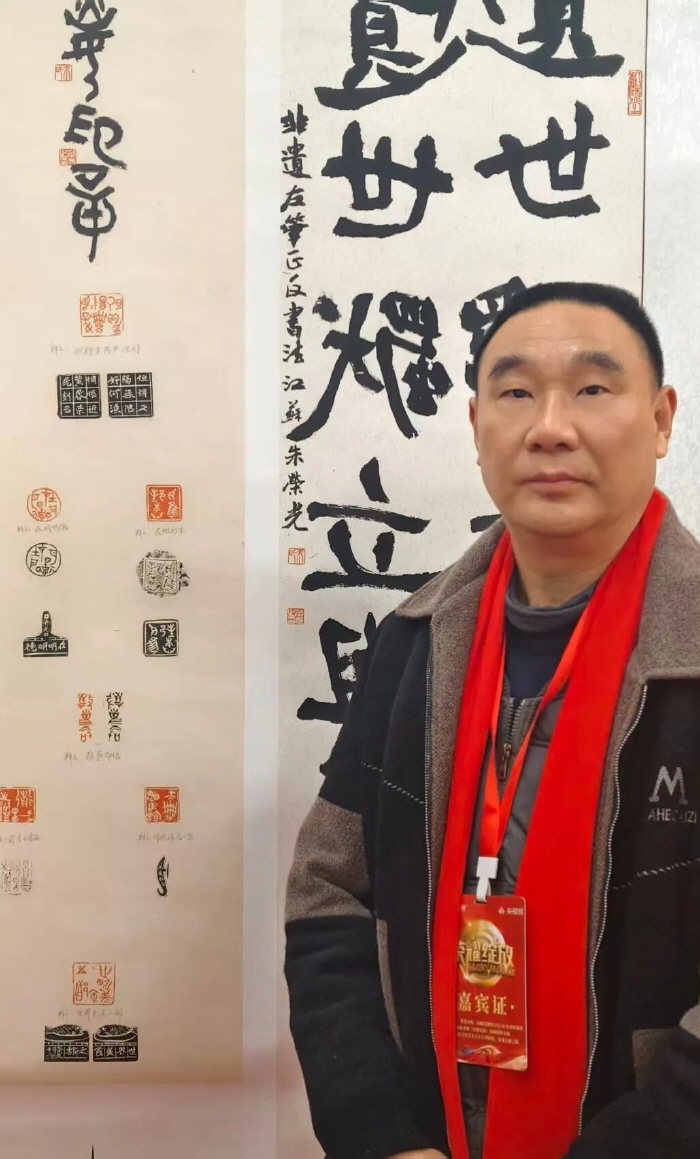 2025年,在匠心奖首届全国非遗设计大赛中,朱荣光的刻字作品《淮安名胜(景)》从全国众多佳作中突围,斩获全国铜奖。2026年1月,他受邀走进北京星光影视园,登上海南卫视《荣耀绽放》非遗春晚的舞台,在颁奖盛典上一展现代刻字艺术的独特魅力。