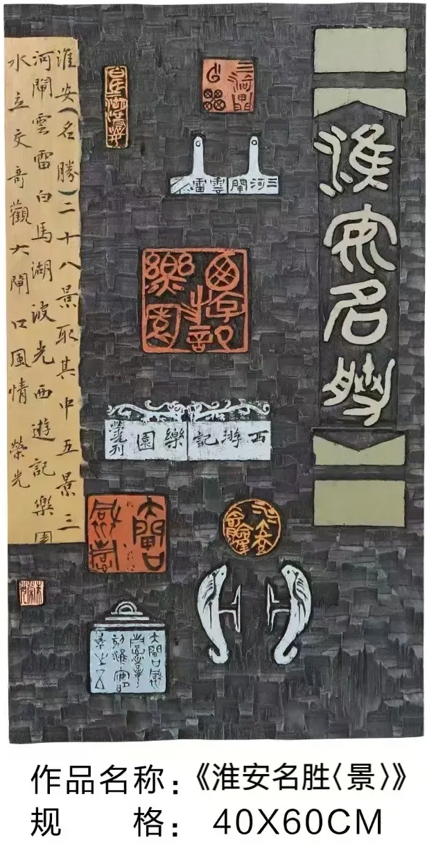 他的刻字作品,是连接历史与当下的桥梁,是匠心与乡情的交融。一刀一刻间,唤醒了刻材里沉睡的淮安记忆,让千年文脉在新时代继续流淌;一笔一划中,他以刻字为媒,让更多人看见淮安、读懂淮安,也让非遗艺术在当代焕发新生。