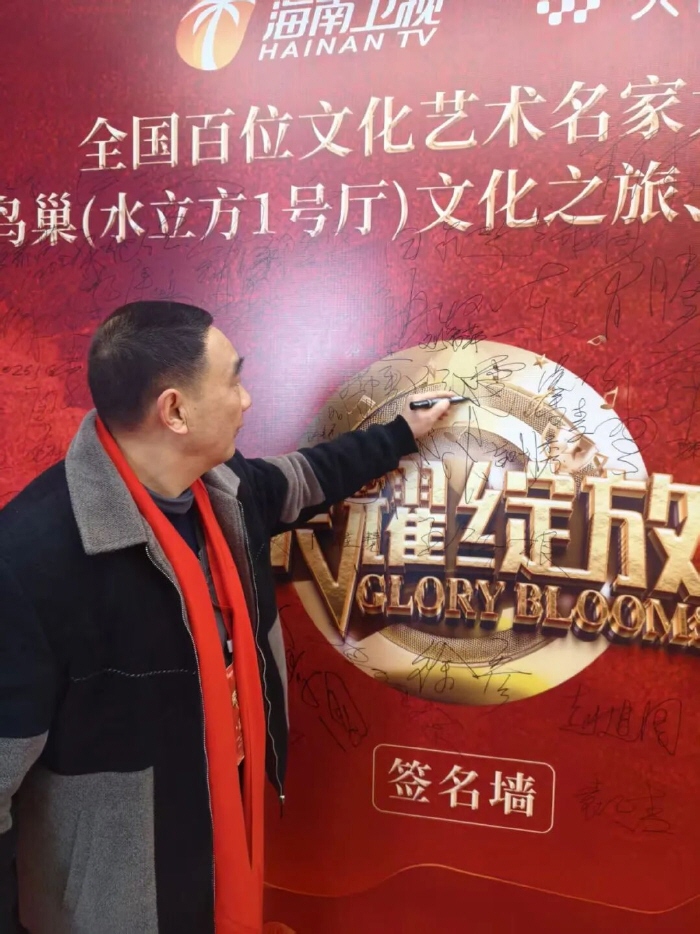 作为土生土长的淮安艺术家,朱荣光始终以传播家乡文化为己任。在非遗春晚的舞台上,他不仅展示了精湛的刻字技艺,更化身淮安文旅的“推介大使”,向全国观众发出邀约:来淮安吧!看运河千里通波,赏西游文化传奇,感受这座历史文化名城的独特魅力。